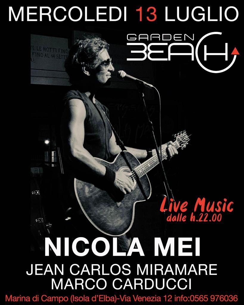 Mercoledì 13 luglio dalle 22.00 Nicola Mei live Music al Garden Beach, Marina di Campo, Isola d’Elba.